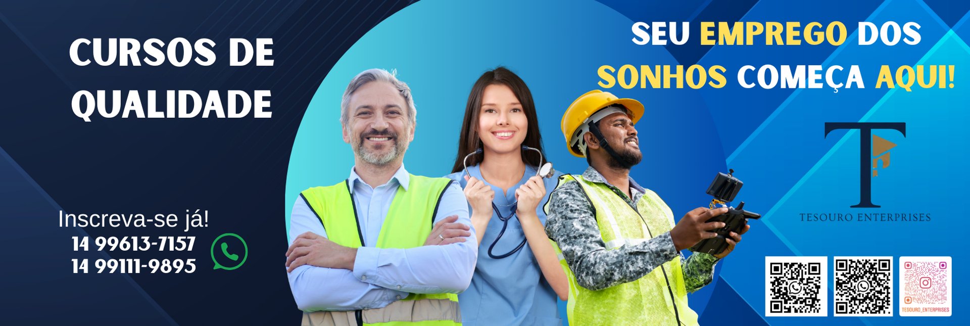 Na Tesouro Enterprises, oferecemos cursos completos e acessíveis, com flexibilidade e suporte profissional, para você se destacar no mercado de trabalho. Venha aprender conosco!